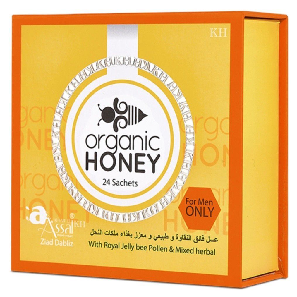Organic Natural Honey For Men infused with Natural Jelly, Honey Bee Pollen 24 Sachets x 10gram